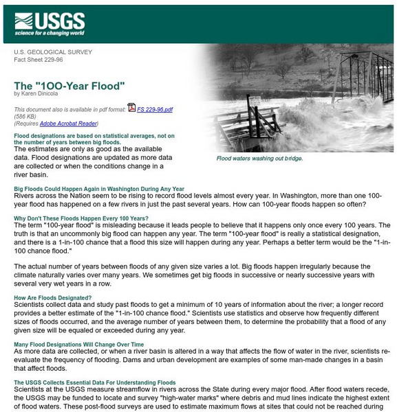 U.s. Geological Survey: The "1 Oo Year Flood"