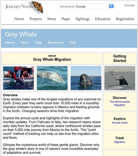 Follow gray whales as they make their long journey from Mexico to their feeding grounds in the Arctic. This webpage gives students background information and up to date news about the migration of the gray whales. Also, students can...