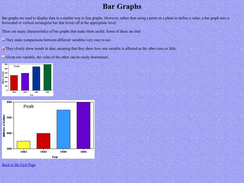 Two bar graph examples are shown and explained at this website. You can learn what kind of data is best represented using a bar graph.