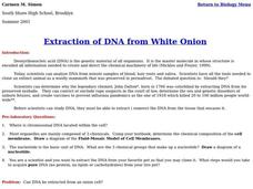 Learners conduct lab test with minced onion to determine where chromosonal DNA is located within the cell, and whether or not it can be extracted.