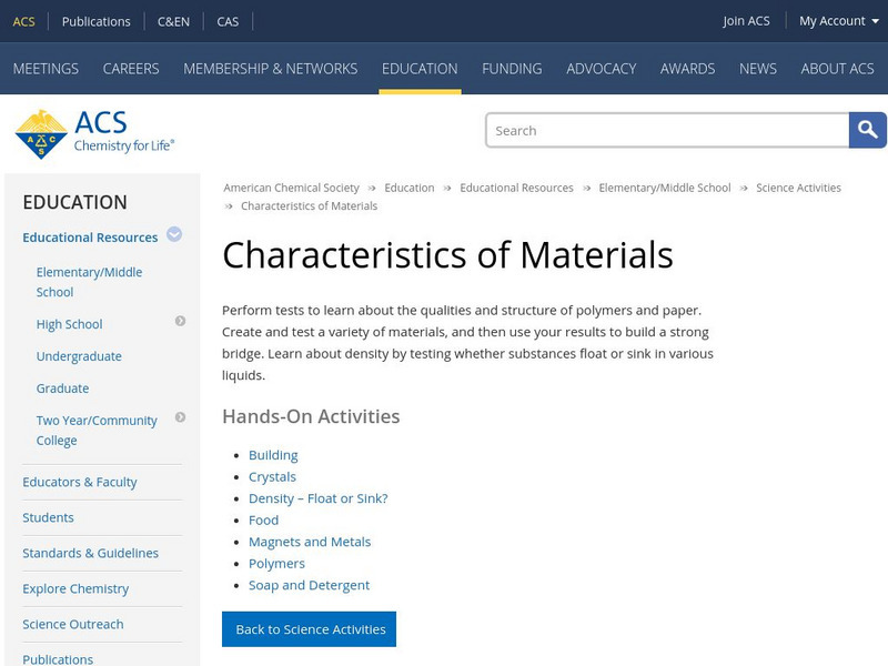 American Chemical Society: Science for Kids: Characteristics of Materials