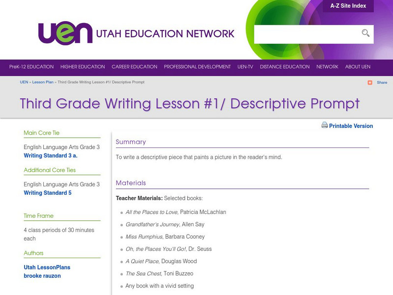 Uen: Third Grade Writing Lesson #1/ Descriptive Prompt