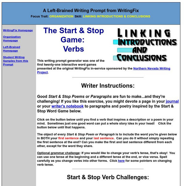Writing Fix: A Left Brained Writing Prompt: The Start and Stop Game: Verbs