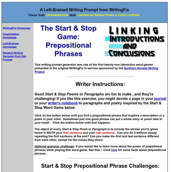 Writing Fix: A Left Brained Writing Prompt: The Start and Stop Game: Phrases
