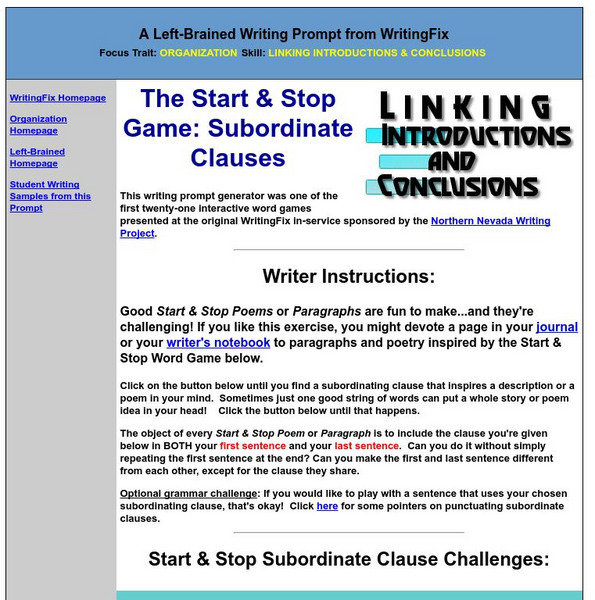 Writing Fix: A Left Brained Writing Prompt: The Start and Stop Game: Clauses