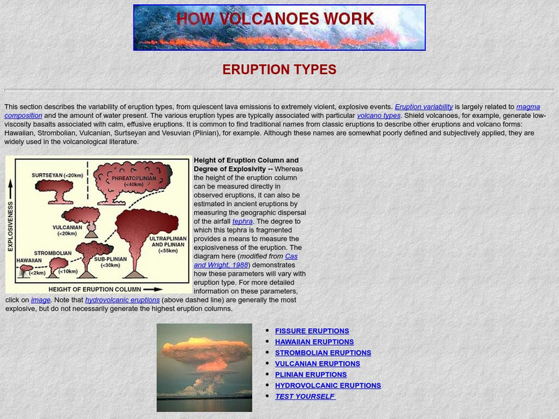 San Diego State University: How Volcanoes Work: Eruption Types