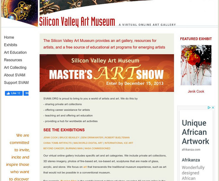From the center of America's high-tech industry, the Silicon Valley Art Museum showcases the talents of artists-- past, present, and future-- who explore the connections between art and technology. Through a variety of high-interest...