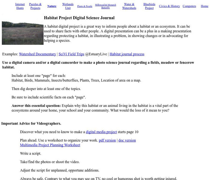 Develop a digital story to illustrate and inform others about different habitats or ecosystems. Resources for building a digital story are provided.