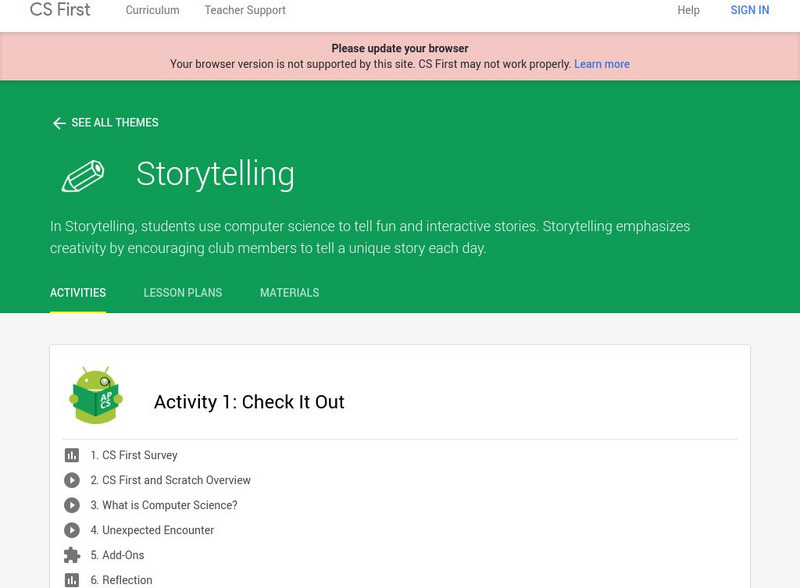 A set of eight activities that teach students basic computer science concepts using the programming language Scratch. Includes lots of additional supports for teachers. All materials are free and teachers sign in to create a class. This...