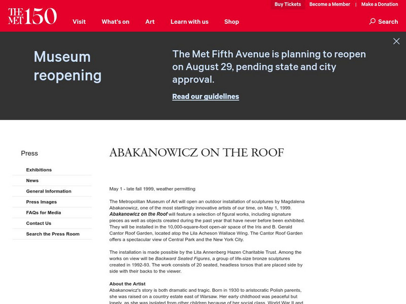 A web exhibit focused on Lichtenstein's sculptures on the roof of the Metropolitan Museum in New York City. Features images of large bronze and aluminum sculptures.