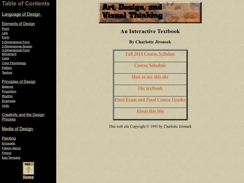 Use the left-hand toolbar of this site to investigate an online textbook for the language of design. It provides visual examples and explanations of line, form, color, color psychology, texture, balance, proportion and many more...