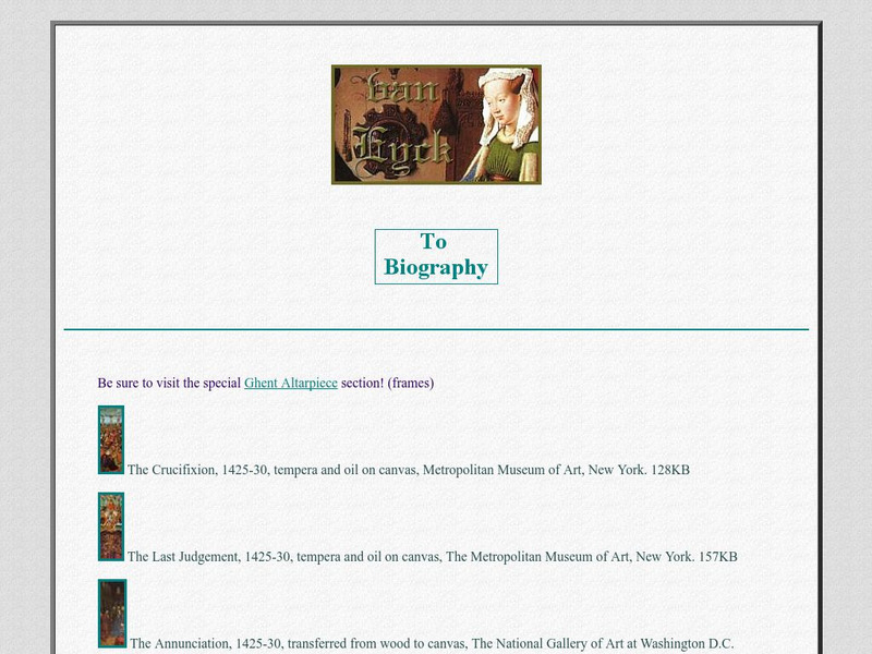 This online gallery contains copies of many van Eyck paintings. Also includes a link to view his biography. A good source for reports and papers.