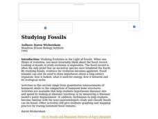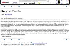 Students study the Evolution in the Light of Fossils. Activities in this lesson range from quantitative measurements of hominoid skulls to the comparison of hominoid bone structures. They hypothesize dinosaur size and speed by looking at...