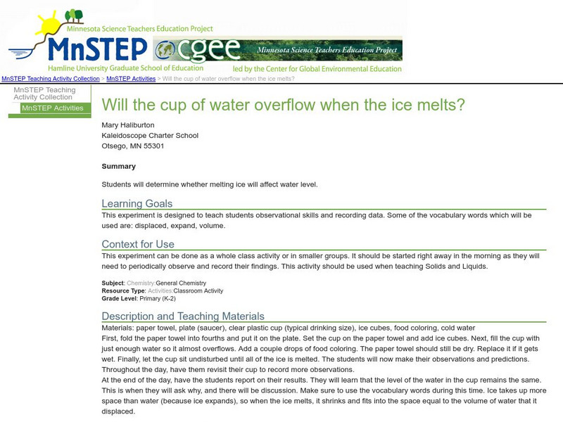 Serc: Mn Step: Will the Cup of Water Overflow When the Ice Melts?
