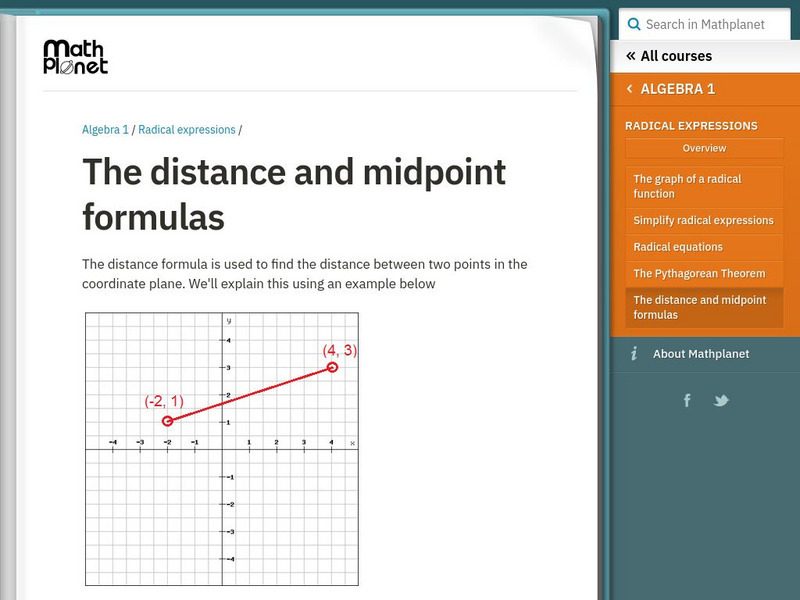 Math Planet: Algebra 1: Radical Expressions: The Distance and Midpoint Formulas