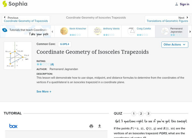 Sophia: Coordinate Geometry of Isosceles Trapezoids: Lesson 3