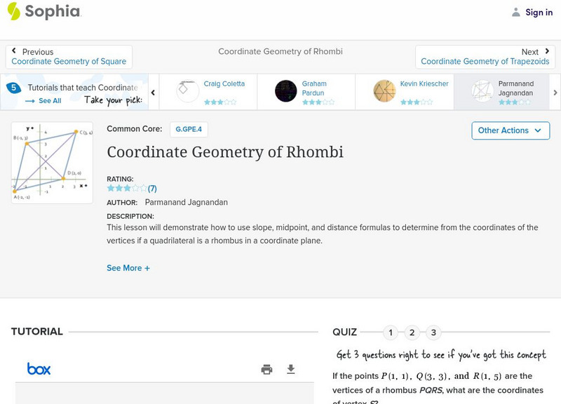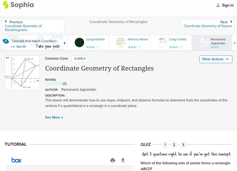 Sophia: Coordinate Geometry of Parallelograms: Lesson 1