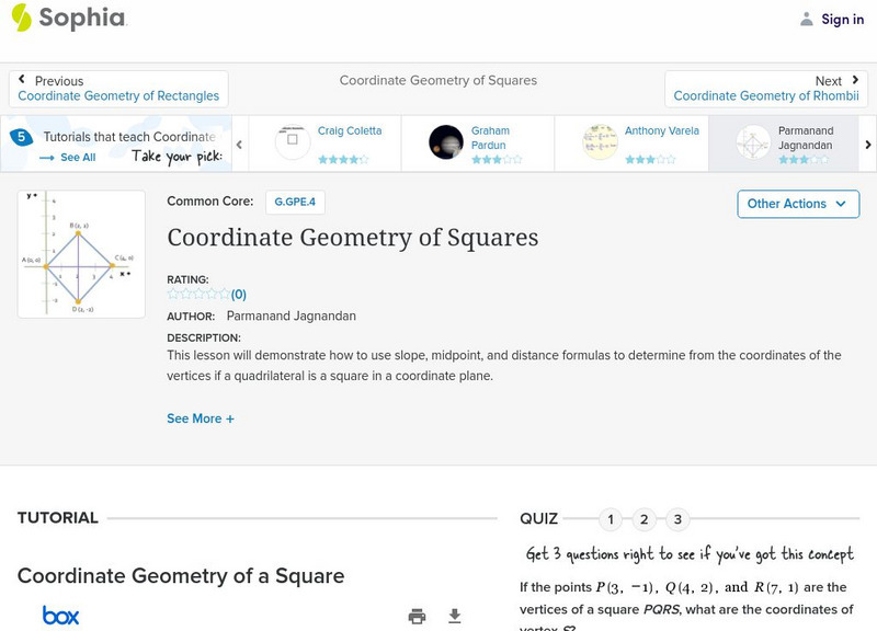 Sophia: Coordinate Geometry of Squares: Lesson 2