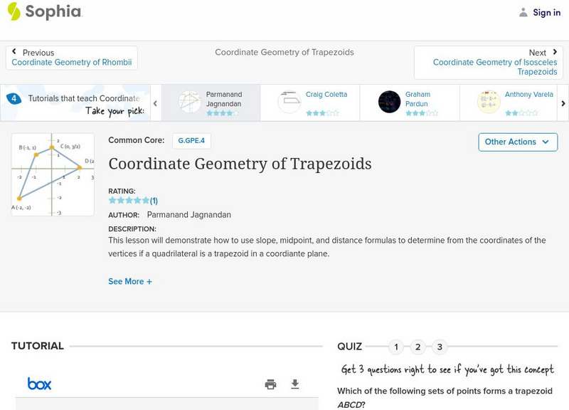 Sophia: Coordinate Geometry of Trapezoids: Lesson 3