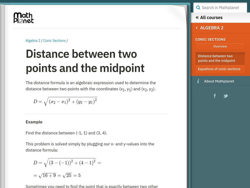 Math Planet: Algebra 2: Distance Between Two Points and the Midpoint