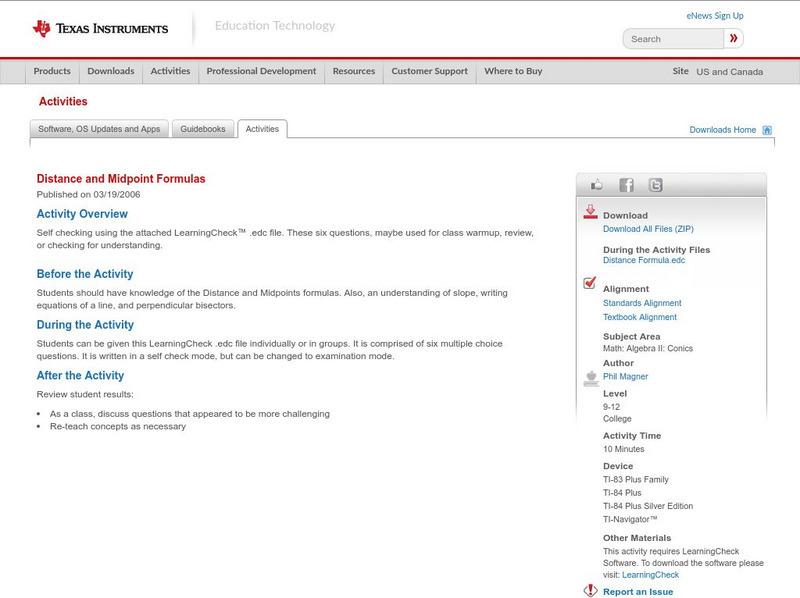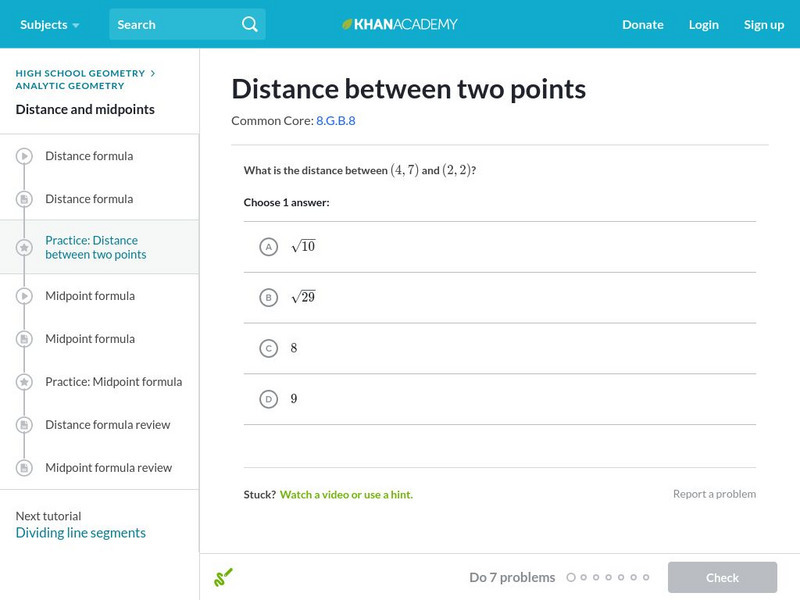 Distance and midpoint formulas are explained through the use of examples and a video lesson. [1:58]