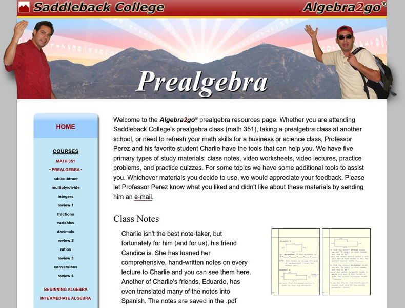 The resource consists of comprehensive learning tools such as class notes, video lectures, and templates through which students can review prealgebra topics.