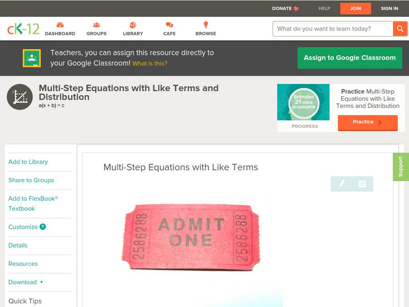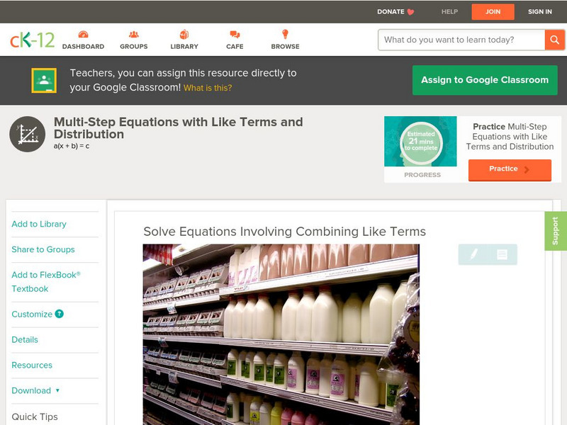 Ck 12: Algebra: Multi Step Equations With Like Terms