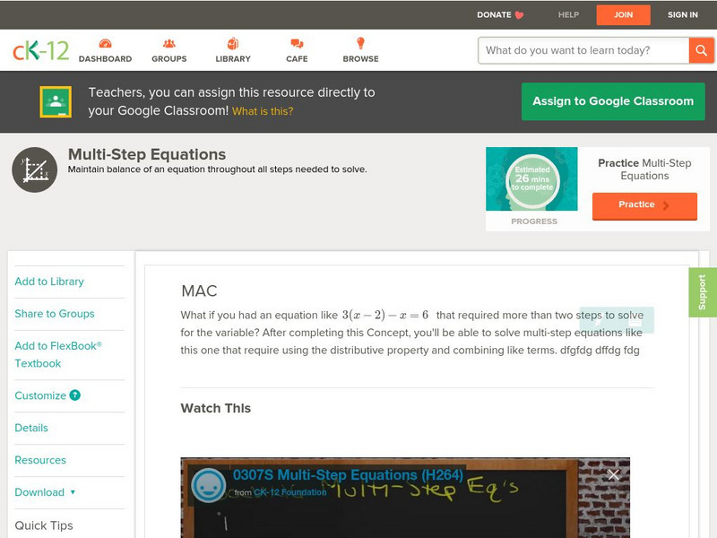 [Free Registration/Login may be required to access all resource tools.] Solve equations that involve more than two steps to isolate the variable.
