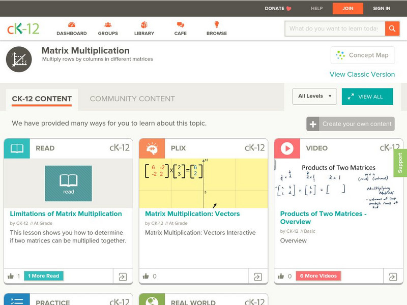 [Free Registration/Login may be required to access all resource tools.] A collection of resources that teach students that, unlike multiplication of numbers, matrix multiplication for square matrices is not a commutative operation, but...