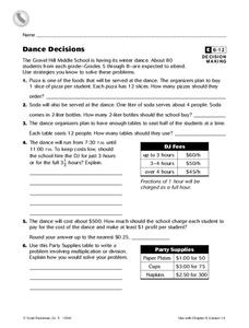 In this making decisions learning exercise, 5th graders look over two charts/tables involving dance decisions and answer six mathematical questions relating to the charts/tables.