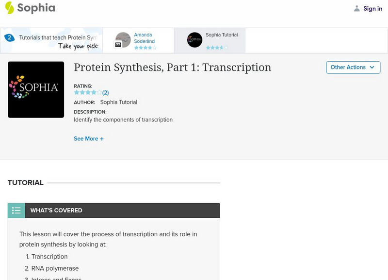 This lesson will cover the process of transcription and its role in protein synthesis.