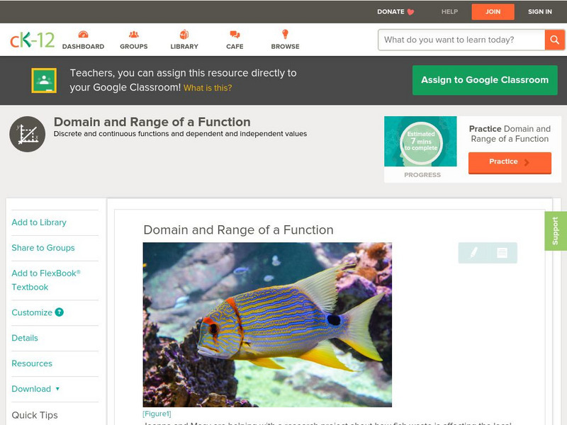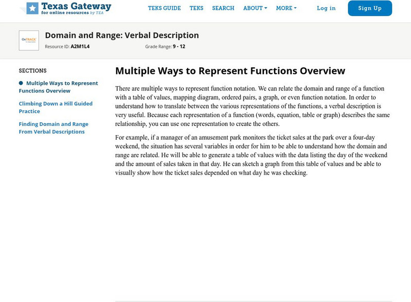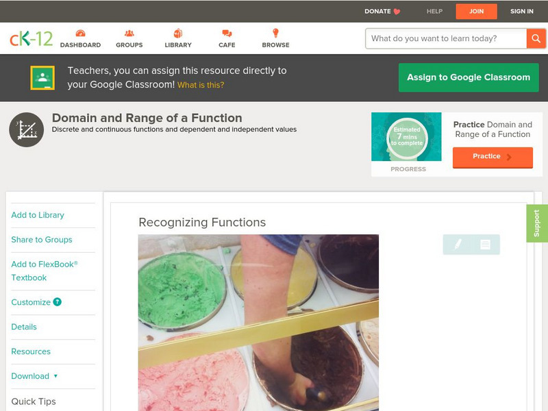 [Free Registration/Login may be required to access all resource tools.] Recognize functions by understanding the terms relation, range and domain.