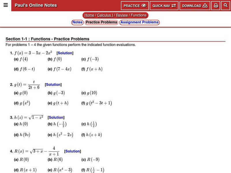 Paul's Online Notes: Function Practice Problems by Paul's Online Notes