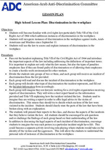 Rights Act of 1964, which addresses instances of discrimination in the workplace. Students then recognize instances of workplace discrimination against...