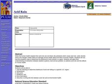 Students use real-time weather maps to determine the likelihood of acid rainfall in a region. Students apply their understanding of interaction between weather systems, land and air pollution, to address acid rain and the effects on...