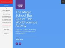Students learn along with Ms. Frizzle's class. For this Magic School Bus lesson plan, students explore craters that objects of different sizes and weights (marbles, Ping-Pong balls, and aluminum foil balls) create.