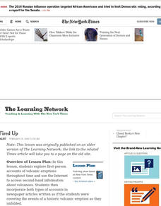 Students explore first-person accounts of volcanic eruptions throughout time and use second-hand information about volcanoes. They use both types of accounts to write news articles covering the events of a historic volcanic eruption as...