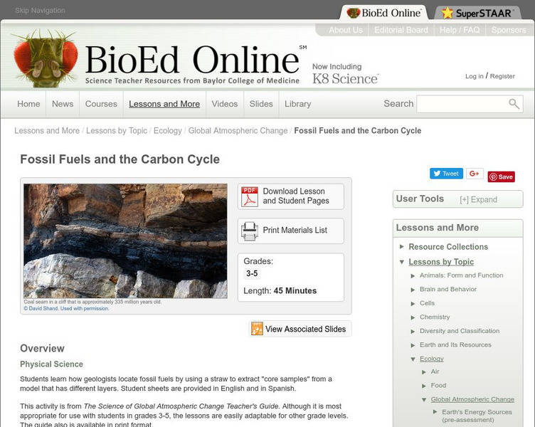 In the following lesson students learn how geologists locate fossil fuels by using a straw to extract "core samples" from a model that has different layers. Student sheets are provided in English and in Spanish.