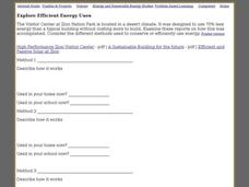 In this energy activity, students explore different ways to conserve energy. They write a short description for each of the 10 methods presented.