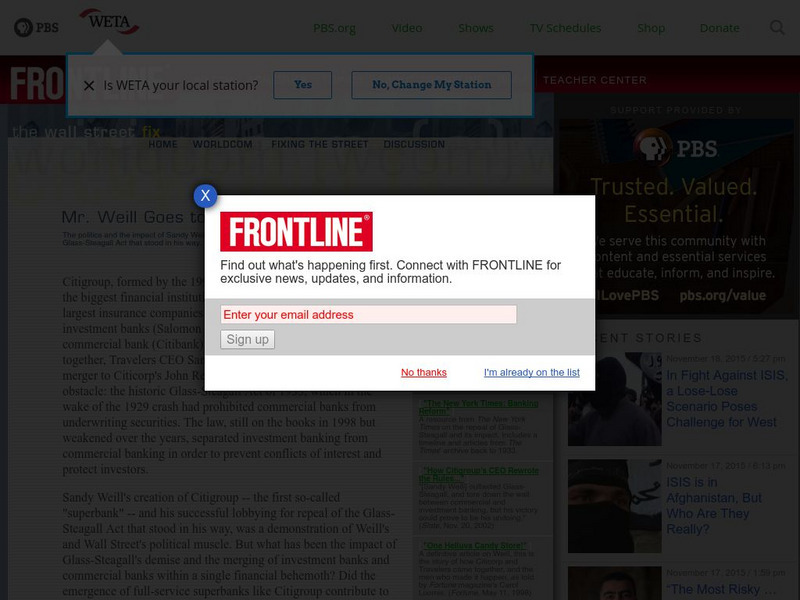 Pbs: Issues Leading to the 2008 Economic Recession: Mr. Weill Goes to Washington