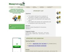 High schoolers work together to examine the concept of opportunity costs. They complete a practice problem and solve other problems during the class period. They share their solutions with the class.