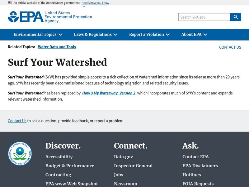 This resource provides information on watersheds, maps, activities, and links to local watershed information.