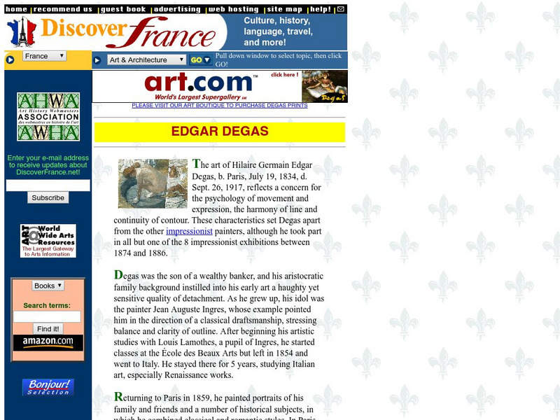 This DiscoverFrance site provides two images of the artist's work, biographical information, quotations, and links to other sites with information about the artist.