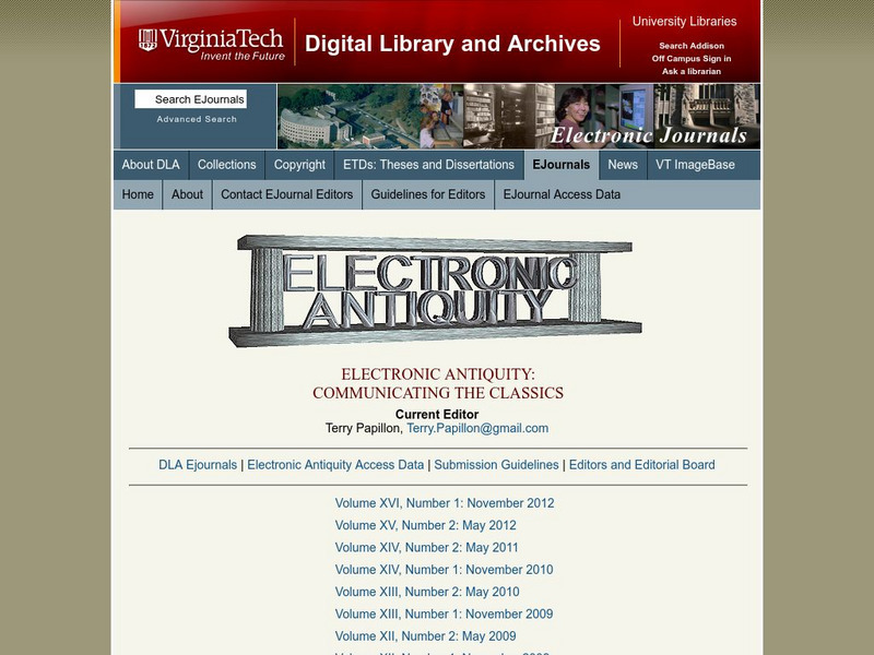 Electronic Antiquity is a scholarly journal with an emphasis on editorial articles, reviews and announcements.