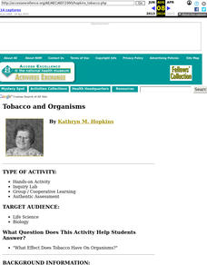 Students work in teams to design and carry out experiments which show the effects of tobacco / nicotine on organisms. They write reports which are submitted to "The Company" and prepare oral reports which are presented to the class.