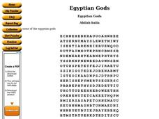 In this social studies worksheet, students locate 51 Egyptian gods in a word search. They may self correct their work by selecting the link at the bottom of the page.