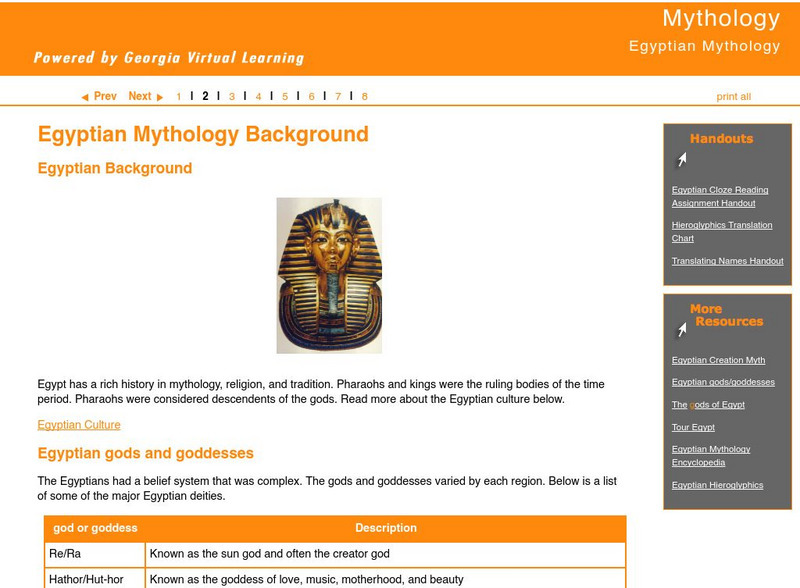 Students use the internet to research one of six Egyptian gods and goddesses of the afterlife. They focus on physical attributes, symbols associated with and the role played by that deity into the afterlife. They write a letter to their...