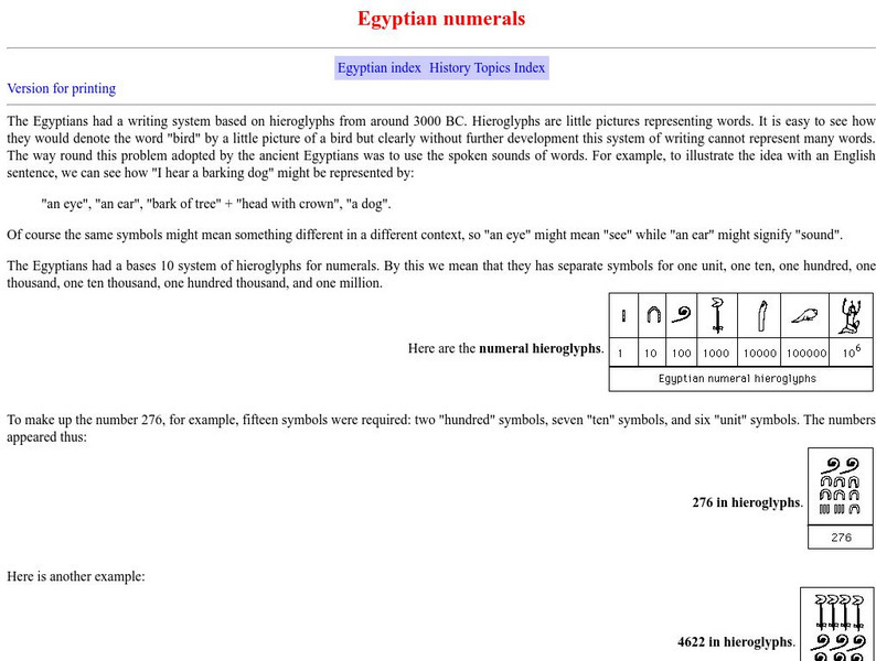 A brief explanation of the numbering system of the ancient Egyptians, with great drawings and sample problems. Use this resource to introduce yourself to the symbols ancient Egyptians used in mathematics. There are some activities to...