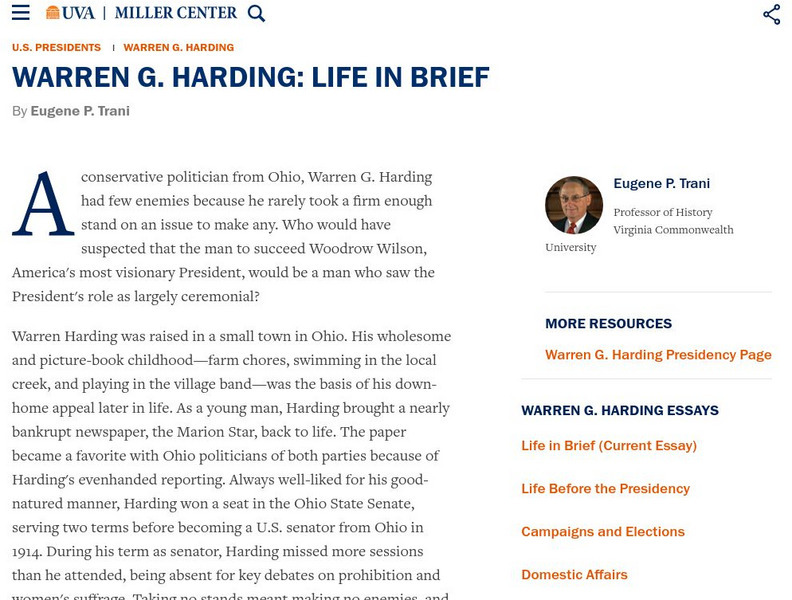 Miller Center at Uva: u.s. Presidents: Warren Gamaliel Harding (1865 1923)