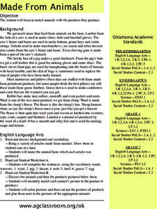 Here is a terrific lesson for elementary schoolers on products that come from animals. In it, pupils discover that we get a lot more than just food from animals. After a class discussion and teacher-led demonstration, learners utilize...